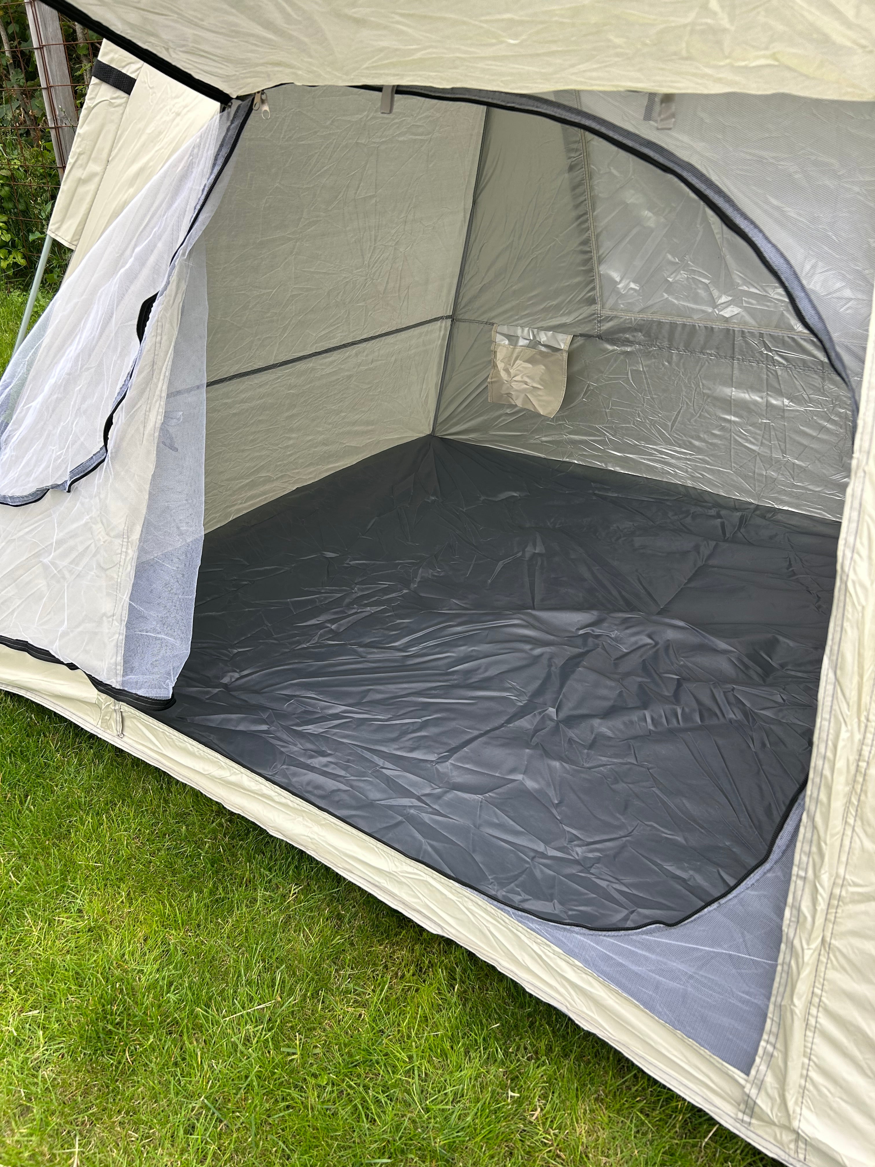 Detta kompakta och praktiska tält med dörrnät är perfekt för dina utomhusäventyr – oavsett om du campar, ska på festival eller till stranden. Med sin rymliga storlek och dörr med tak får du både god komfort och skydd mot solen vid ingången.
