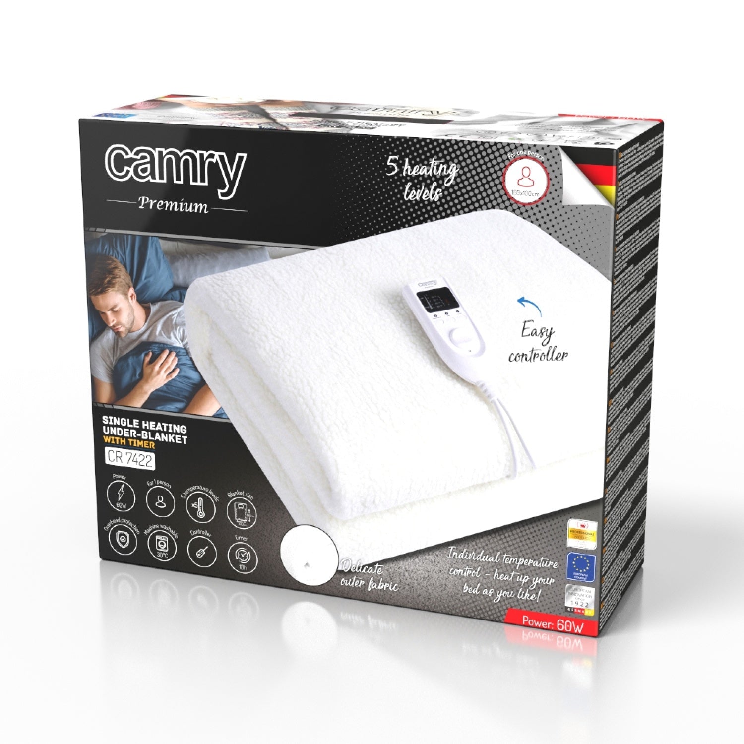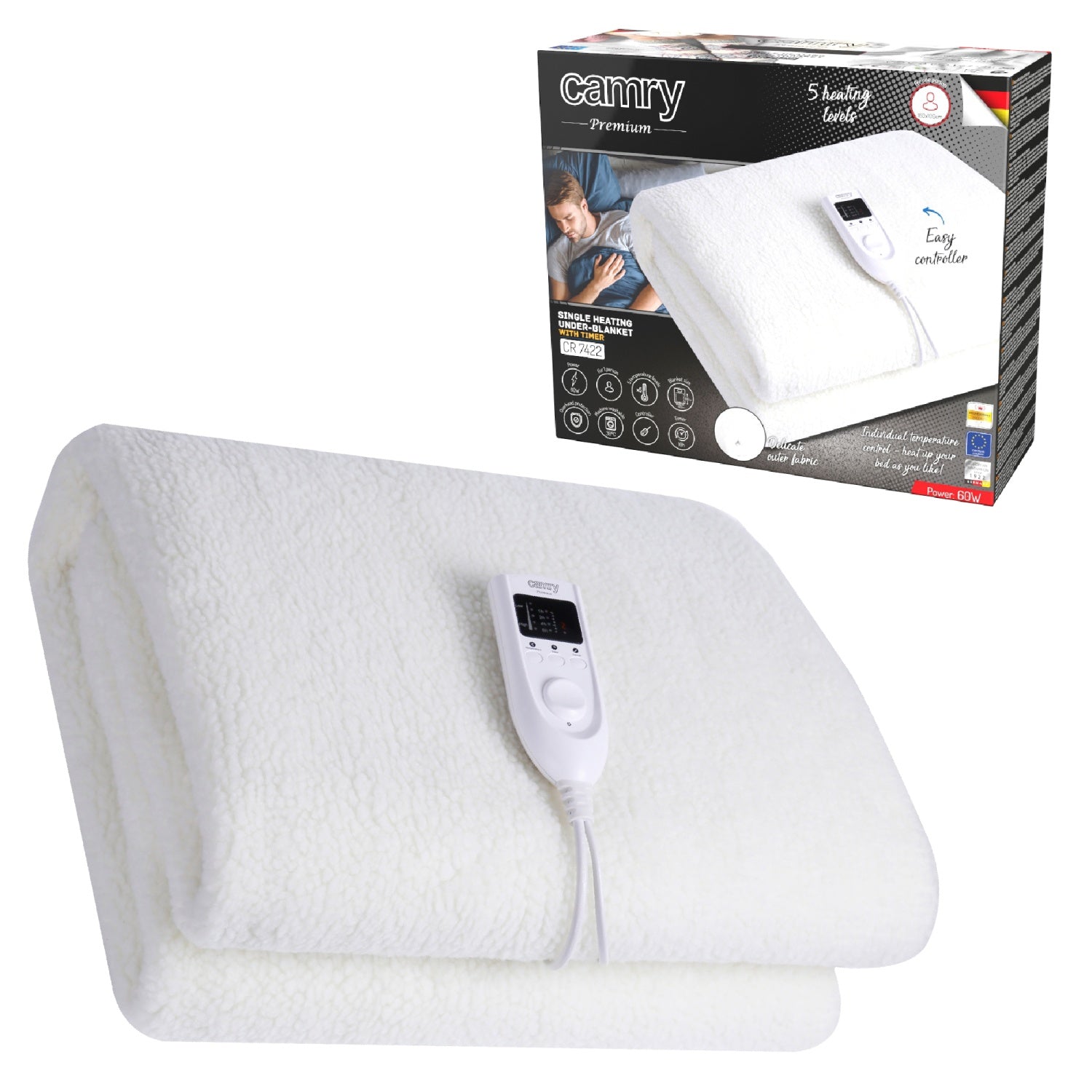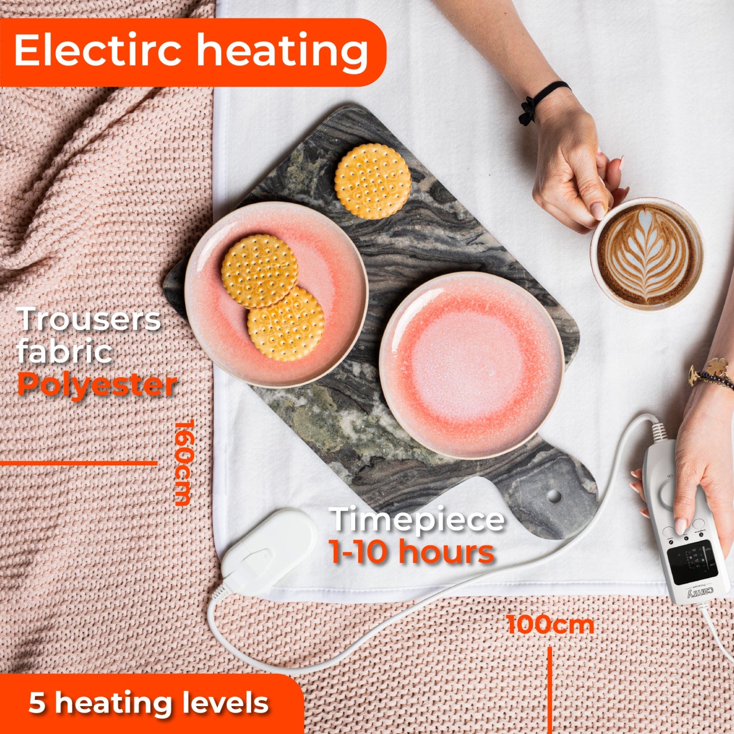 🧼 Lätt att rengöra Temperaturkontrollen och nätsladden är avtagbara, vilket gör det enkelt att tvätta filten i maskin i 30°C. Det mjuka, syntetiska tyget känns bekvämt mot huden och är lätt att hålla rent.